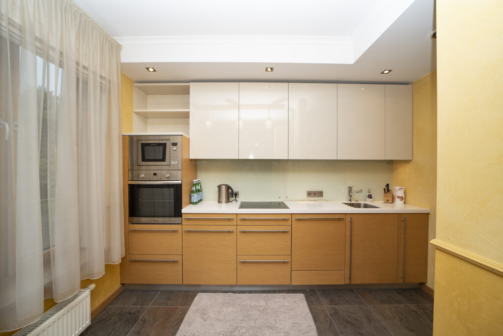 Gaišas un plašas telpas: divas guļamistabas atpūtai un viesistaba ar virtuvi – ideāla kopīgām vakariņām un brīvajam laikam.