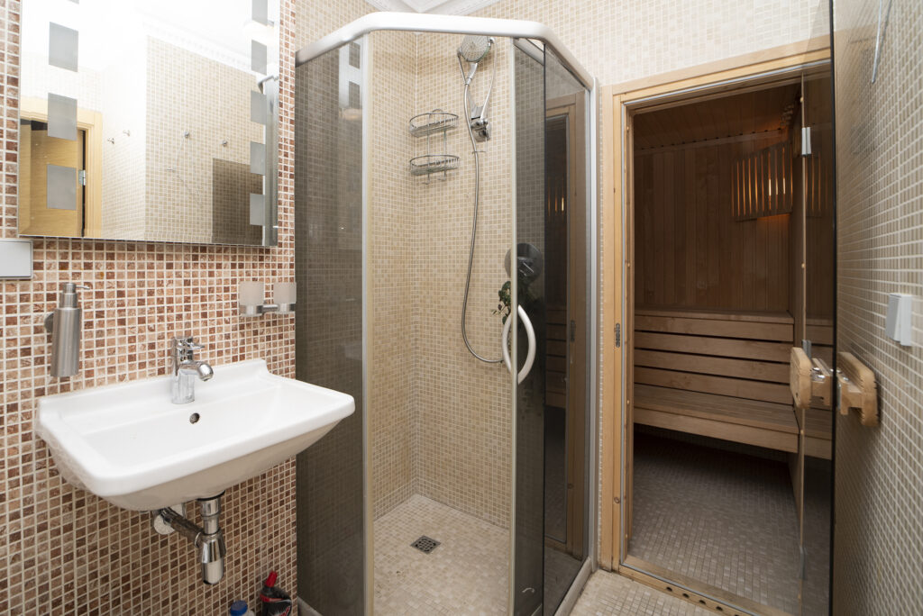 Ērts plānojums: atsevišķa tualete un duša, plaša stiklotā lodžija ar skatu uz pagalmu – lieliska vieta rīta kafijai.