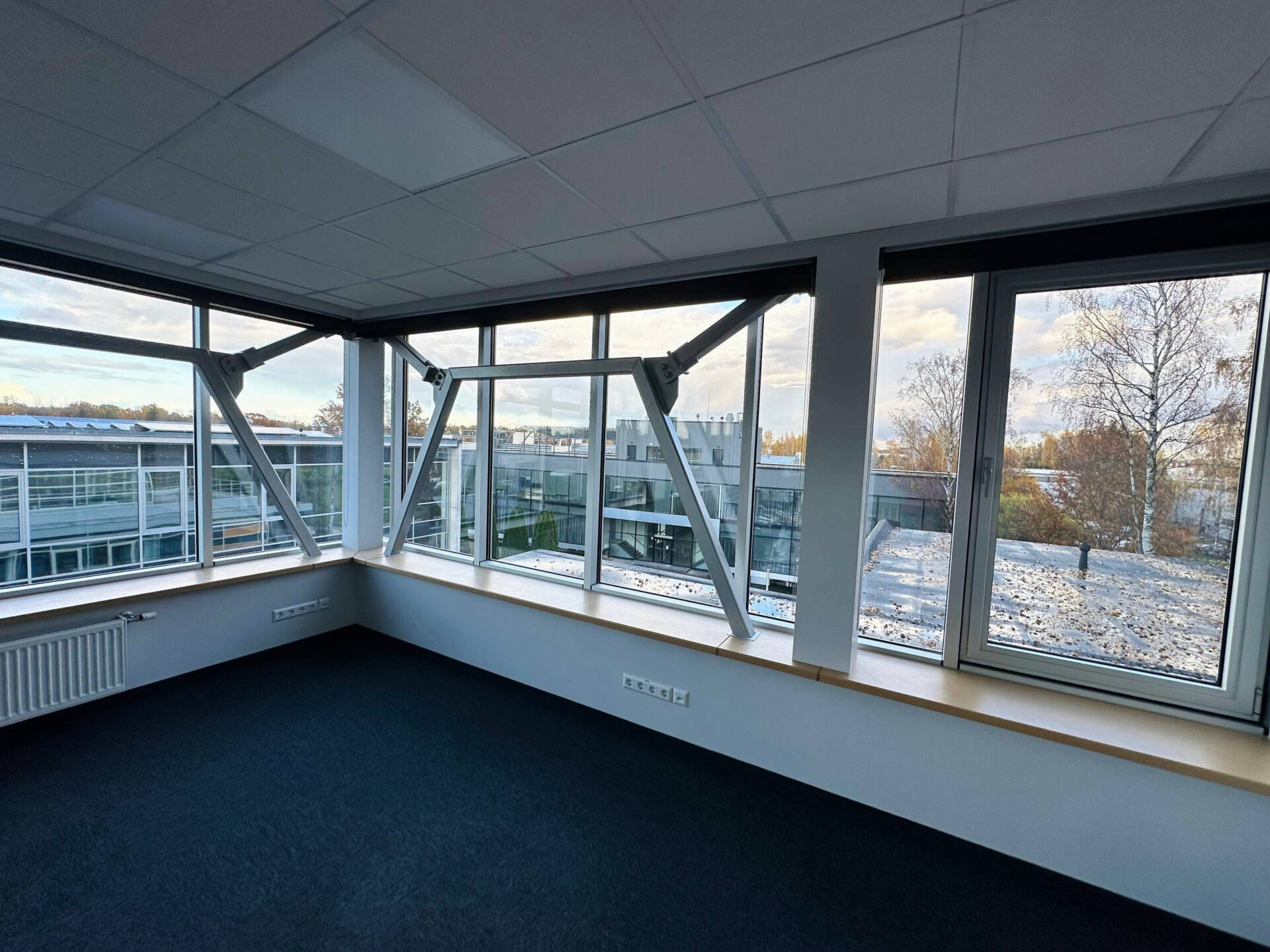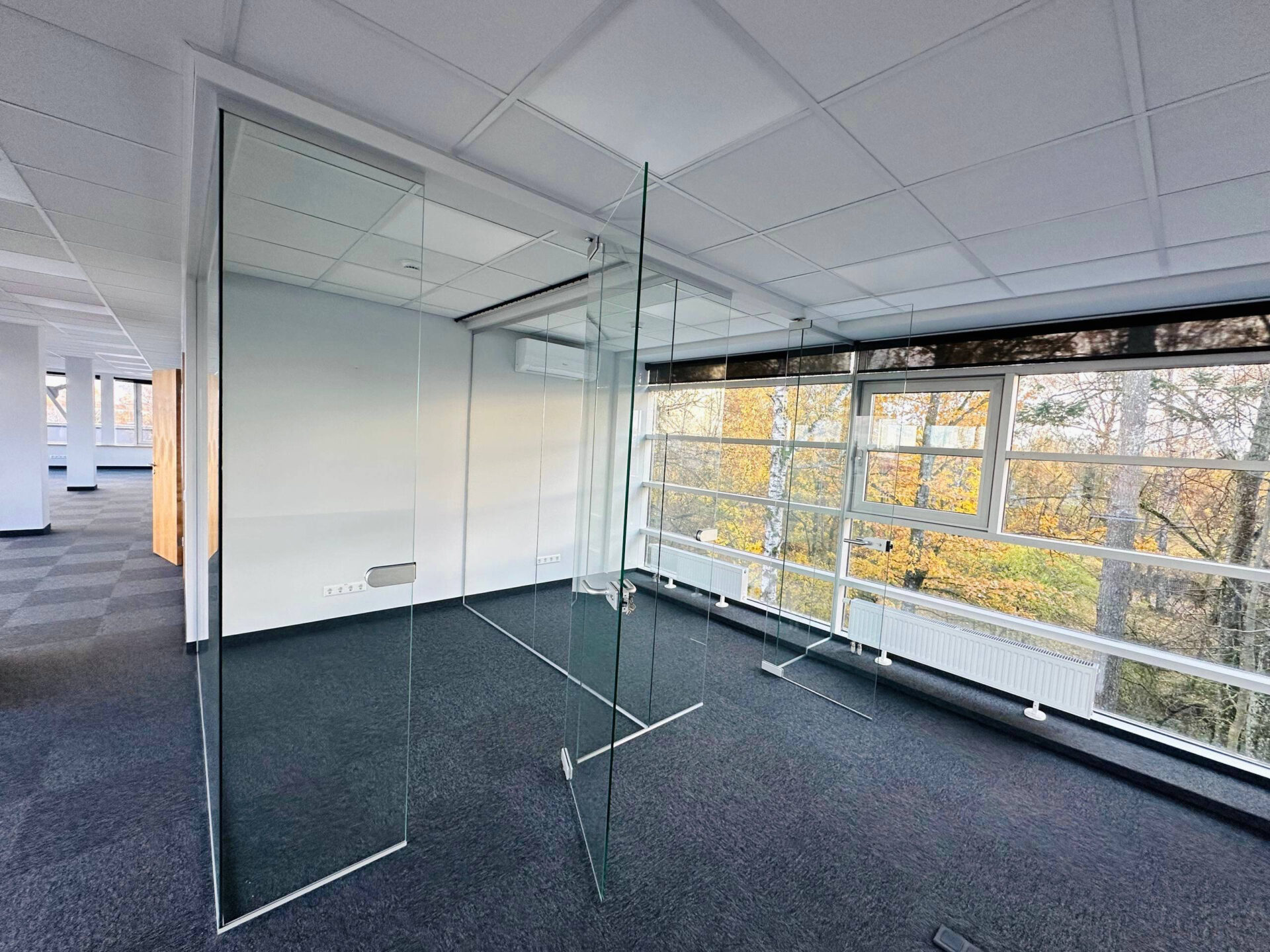 Piedāvājumā – ekskluzīvs birojs 220 m² platībā modernā, stiklotā ēkā ar panorāmas skatu.