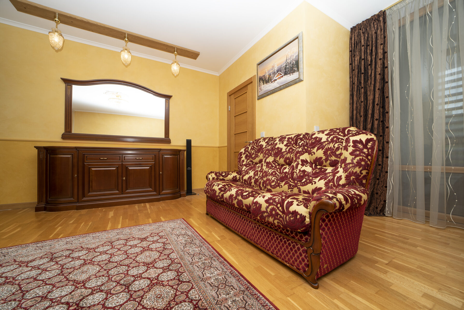 Просторные светлые комнаты: две спальни для отдыха и гостиная, объединенная с кухней – сердце дома для ваших встреч.