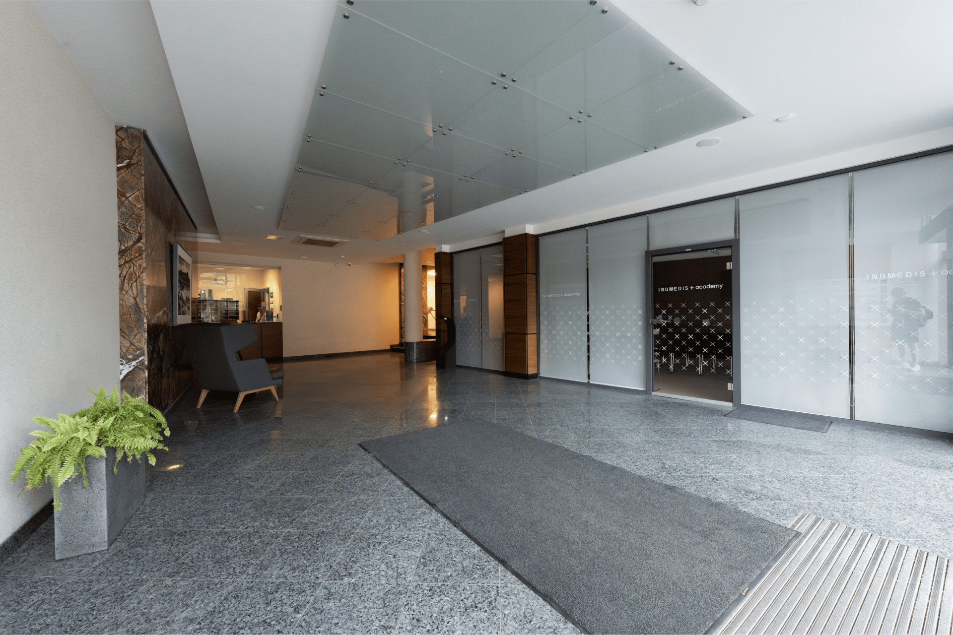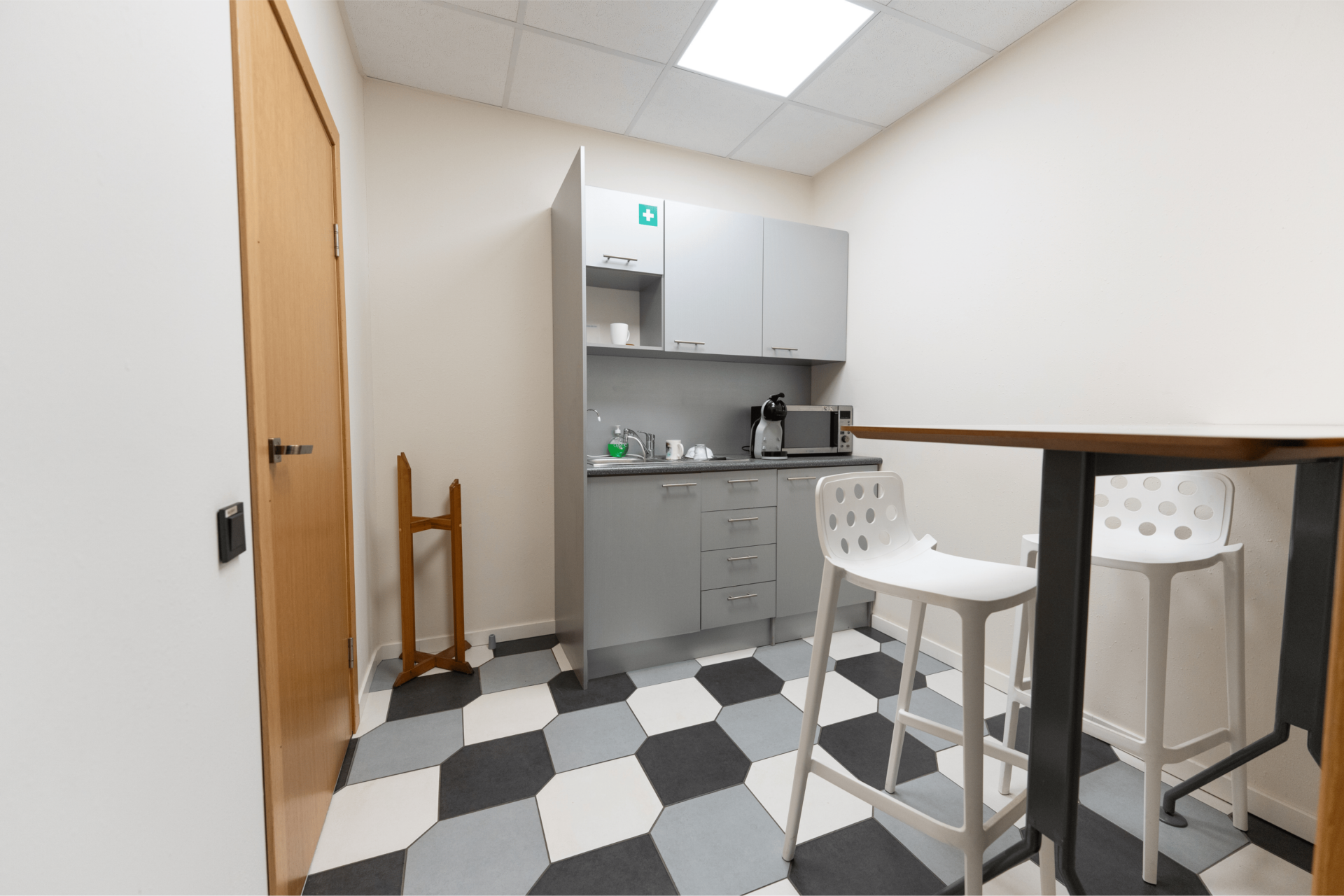Планировка: open space зона, 2 отдельных кабинета, переговорная комната, отдельная рецепция, кухня с встроенной техникой, склад, санузел